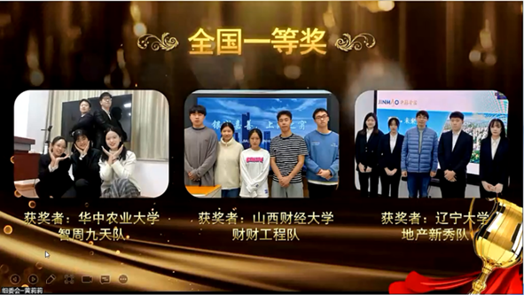 本次大赛收到了全国共186所高校,近1万名学生的报名。经过区域赛的激烈角逐,共有190支参赛队伍进入全国总决赛。在beat365手机版官网领导的全力支持和师生的共同努力下,我校作品在全国高校近200项参赛作品中脱颖而出。由邢鹏老师和曲赜胜老师指导的地产新秀队(荆诗淇、陈佳洋、郑智冉冉、董亦菲、牛瑞瑜)荣获全国一等奖。整个比赛过程,我校参赛学生克服疫情防控带来的不便,表现出专业、专注、责任、勤奋、谦虚的特质,给评委及组委会留下深刻印象,充分展现了beat365手机版官网本科生在疫情防控期间良好的精神面貌。