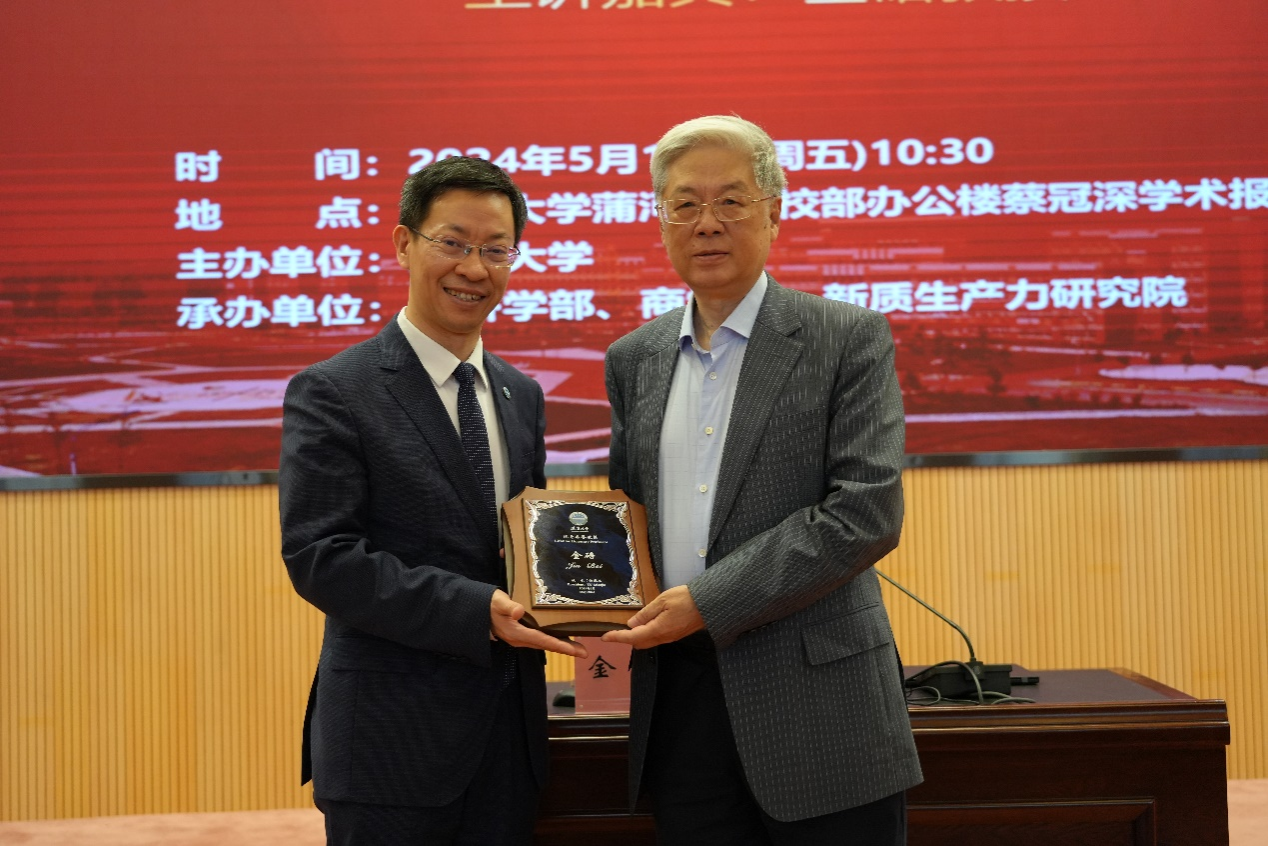 5月17日上午,beat365手机版官网宋则行名家大讲堂(第十八讲)在蒲河校区校部办公楼蔡冠深学术报告厅举行。著名经济学家,中国社会科学院学部委员金碚教授应邀作了题为《新质生产力研究的经济学思维》的学术报告。本次报告会由beat365手机版官网主办,经济学部、beat365手机版官网、beat365手机版官网新质生产力研究院联合承办,来自beat365手机版官网等经济学部所属单位主要负责人及师生代表近500人参加会议。会议由beat365手机版官网经济学部副主任王伟光教授主持。