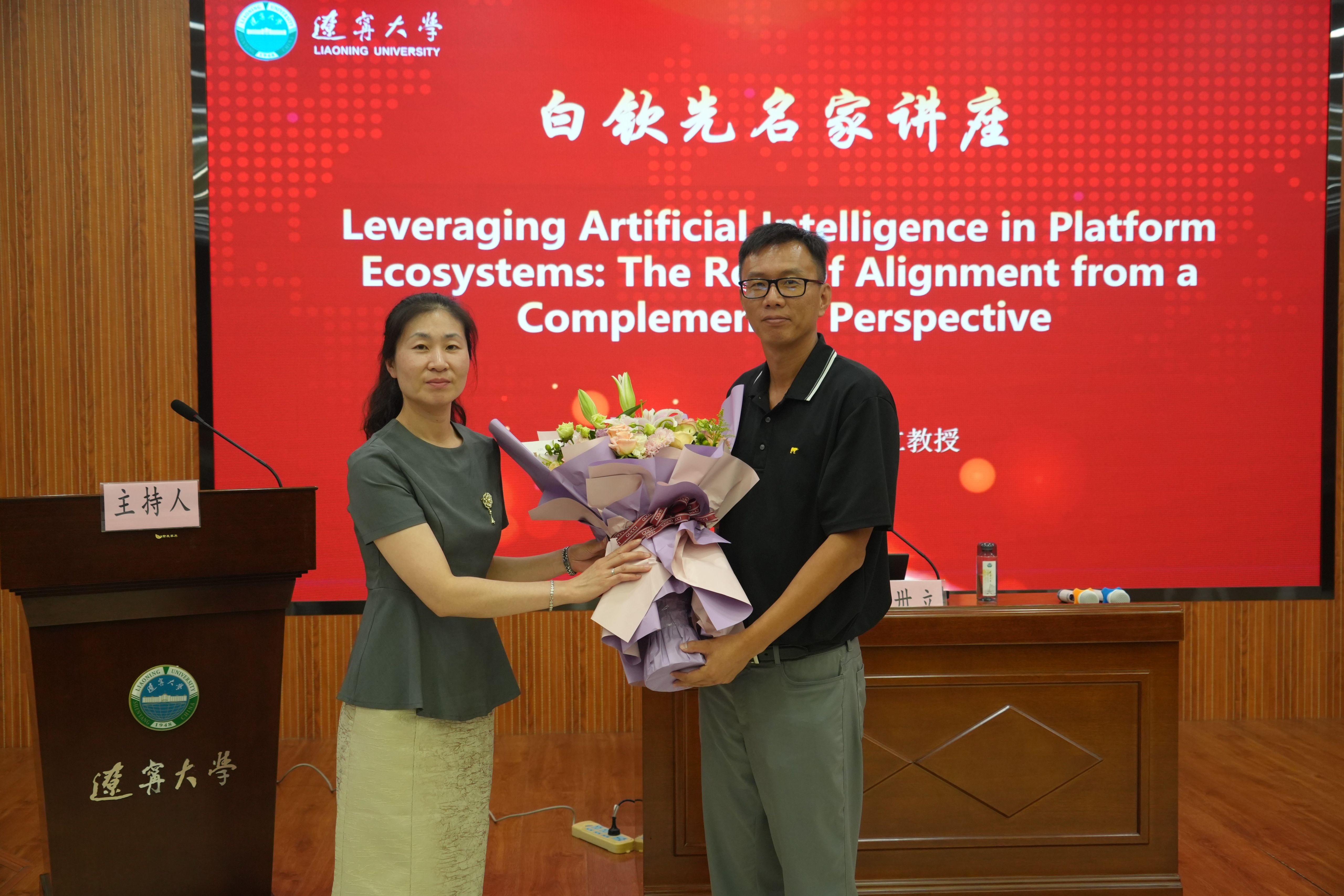 讲座结束后,beat365手机版官网党委常委、副校长霍春辉教授为李卅立教授颁发了“白钦先名家讲座”纪念证书,beat365手机版官网社会科学研究院时云副院长为李卅立教授献花致敬。