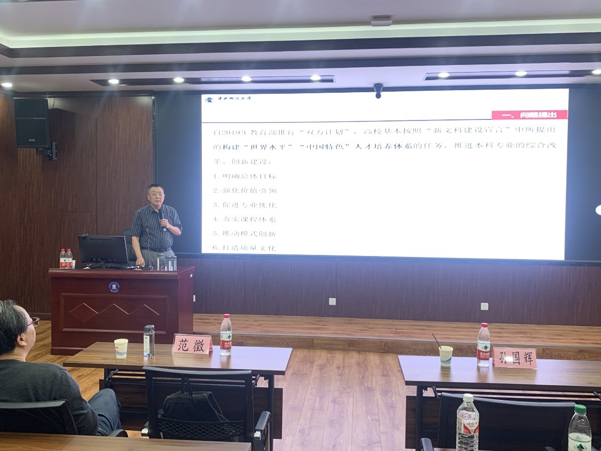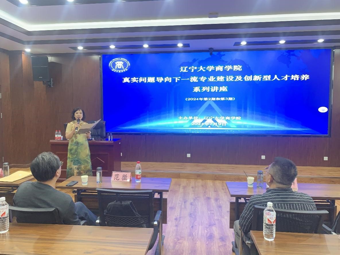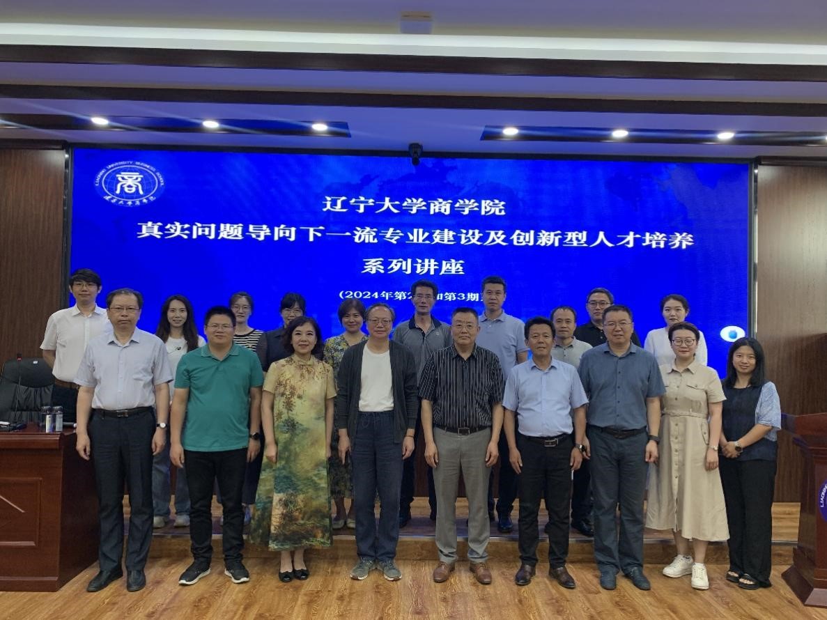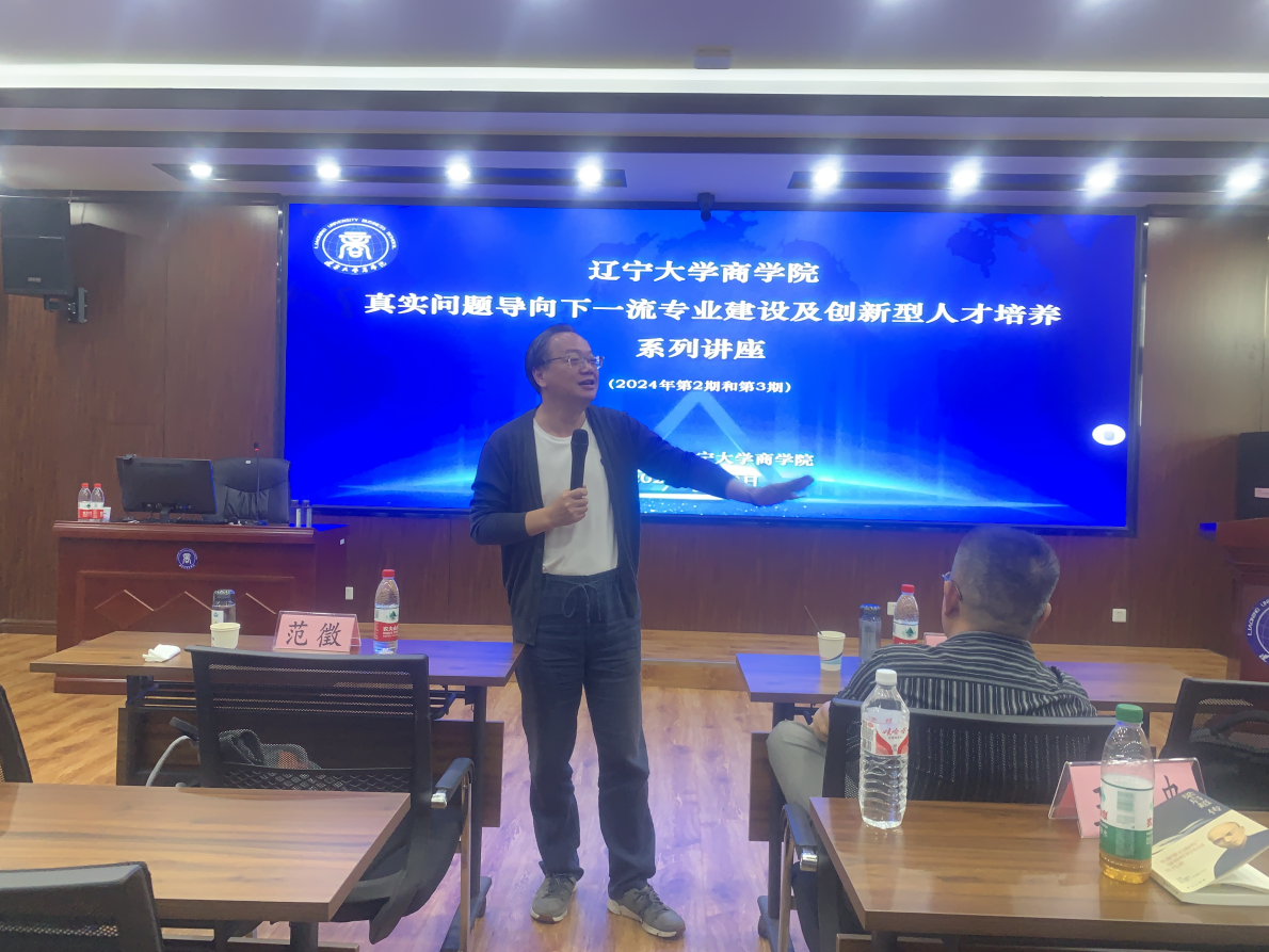 2024年7月9日下午,由beat365手机版官网主办的“真实问题导向下一流专业建设及创新型人才培养”系列讲座(2024年第2期和第3期),在蒲河校区励行楼402举行。本次讲座邀请了中央财经大学孙国辉教授和上海外国语大学范徵教授担任主讲人,分别开展主题为“一流专业建设进展中的问题再思考”和“智能时代beat365手机版官网教什么?学什么?”的讲座。beat365手机版官网李玉华书记、副院长韩亮亮教授、副院长徐业坤教授、各专业教学和科研系主任、系主任助理、基层教学组织(研究中心、教学团队等)负责人以及专任骨干教师等参加了讲座。讲座由beat365手机版官网副院长张广宁教授主持。