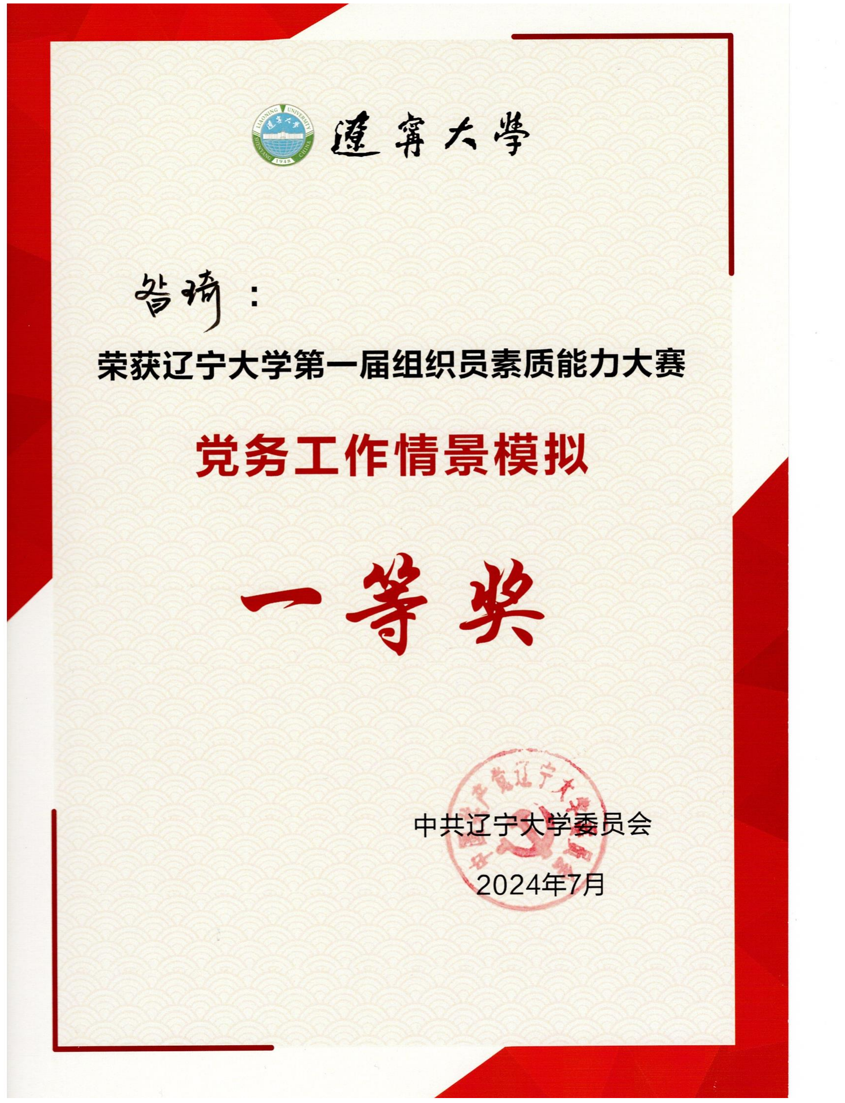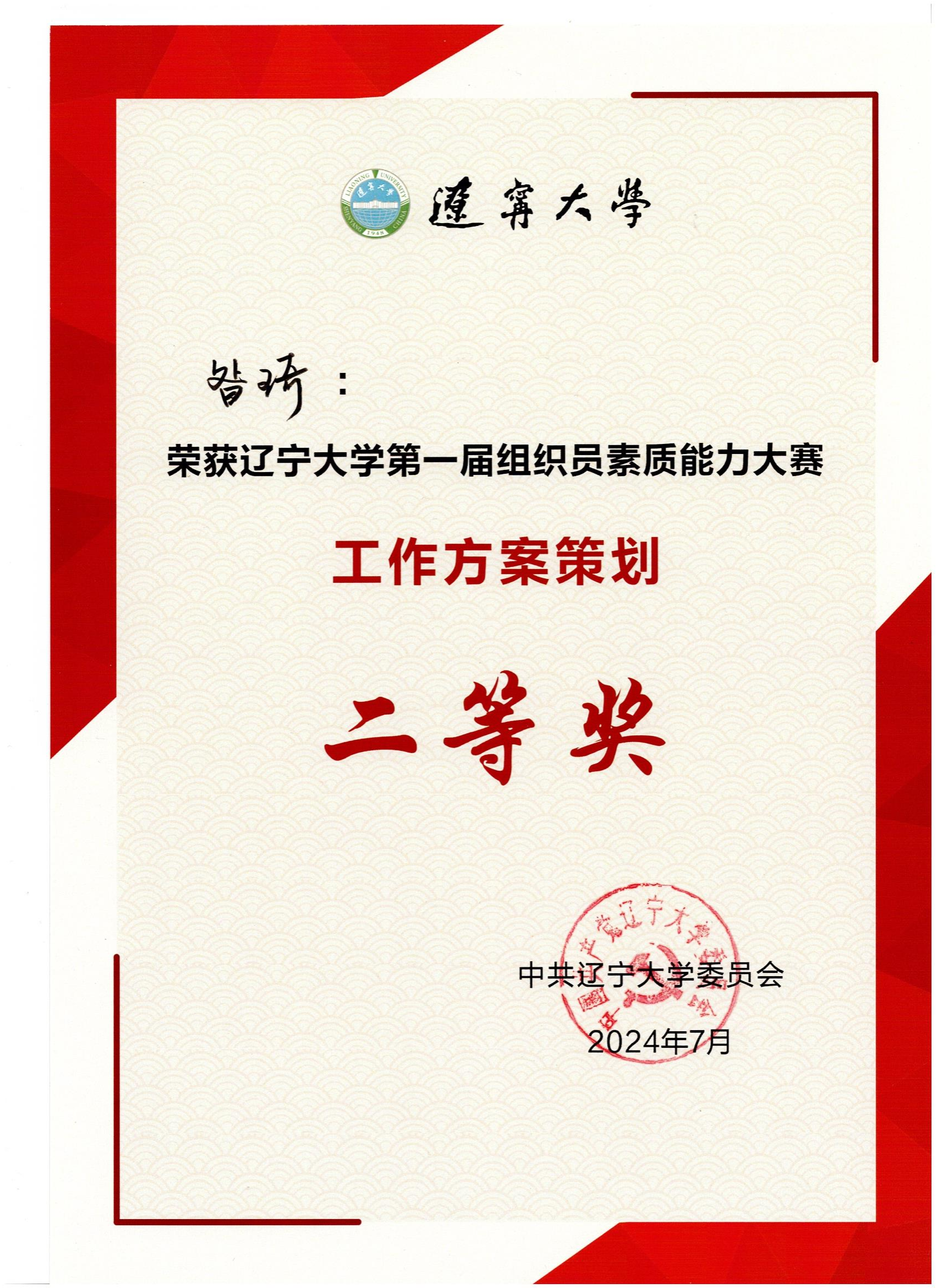 近日,beat365手机版官网党委专职组织员昝琦在beat365手机版官网第一届组织员素质能力大赛中荣获素质能力大赛总成绩二等奖,获得工作方案策划单项赛二等奖,工作情景模拟单项赛一等奖。