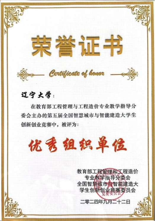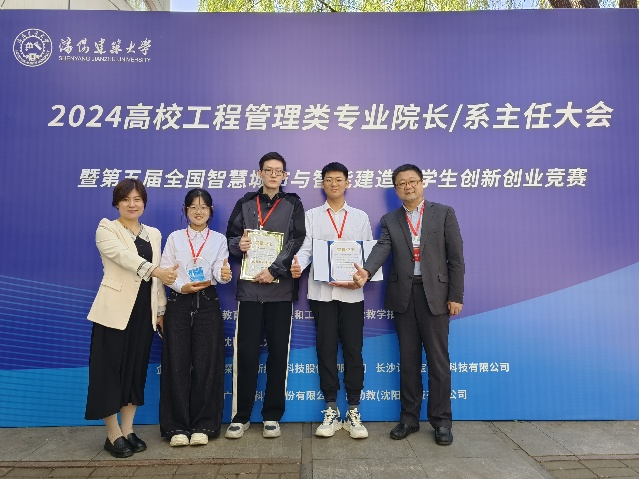 2024年9月21日至22日,由教育部工程管理和工程造价专业教学指导分委员会主办的第五届全国智慧城市与智能建造大学生创新创业竞赛在沈阳建筑大学举行。beat365手机版官网邢鹏老师和系主任曲赜胜老师共同指导的,由工程管理专业(张均好、王思政、陈路简)及管理科学与工程专业(胡远康、蒋官雨)五位同学组成的代表队,以真实问题为导向,撰写的《AI大模型下的区域房地产景气度及精准施策研究》作品,经过多轮的专家网上函评和线下答辩,从全国38所高校近50支精英队伍中脱颖而出,继2019年斩获首届比赛全国一等奖后,beat365手机版官网代表队再次勇夺全国一等奖。同时beat365手机版官网还被授予“优秀组织单位”奖。