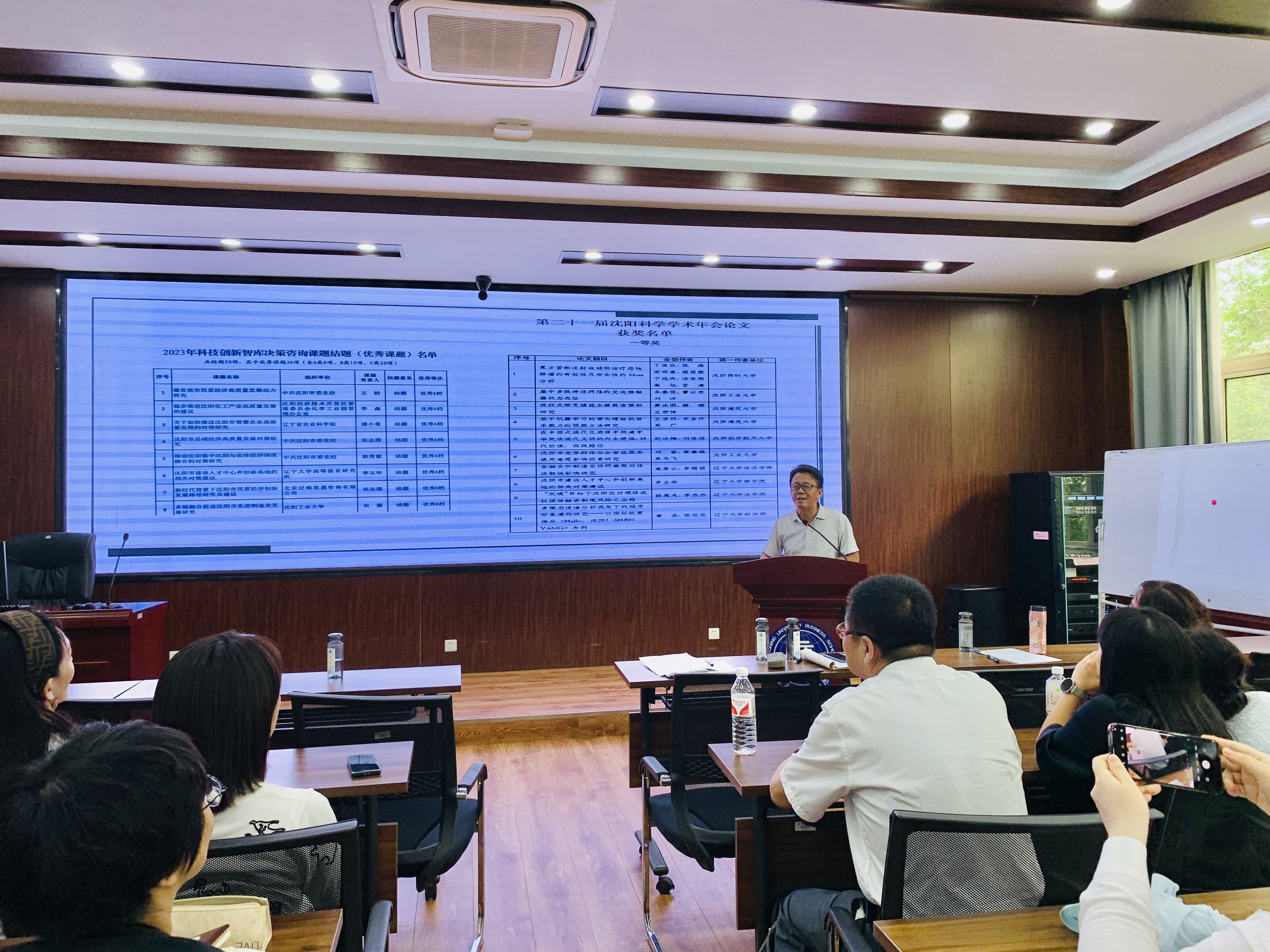 近日,beat365手机版官网在蒲河校区励行楼401会议室举办第二十一届沈阳科学学术年会优秀论文宣讲会。宣讲论文题目为“沈阳市建设人才中心和创新高地的相关对策建议”,该论文在第二十一届沈阳科学学术年会论文评选中获评优秀论文一等奖。根据沈阳市科学技术协会及沈阳市社科联的要求,获奖作品需要进行学术宣讲。