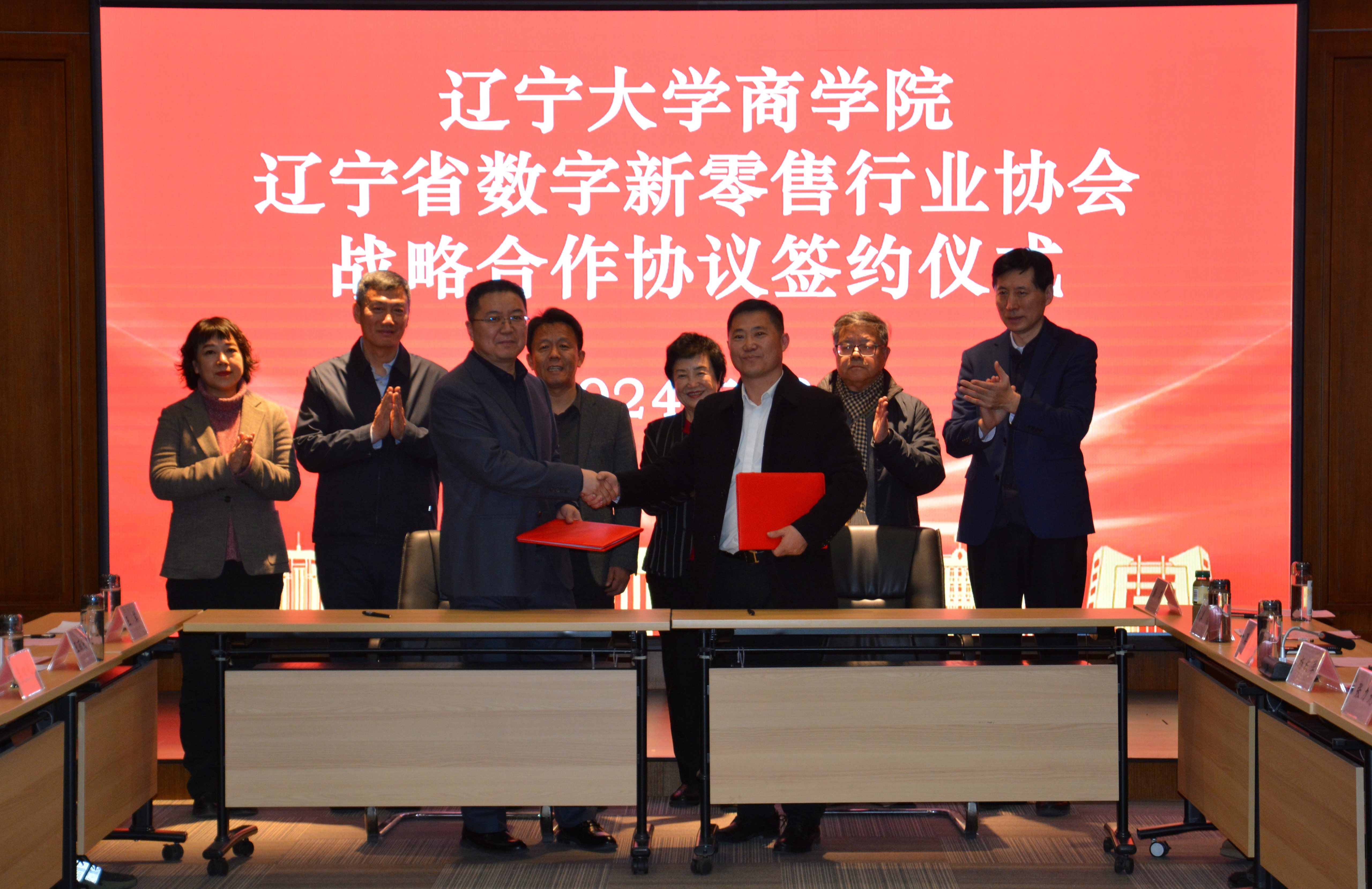 12月11日,辽宁省数字新零售研究院成立大会在beat365手机版官网励行楼503会议室举行。全国政协常委、省政协原副主席姜笑琴,辽宁省商务厅二级巡视员张悦,辽宁省委宣传部原副部长、省网信办原主任葛本亮,辽宁省数字新零售行业协会会长杨权学,beat365手机版官网社会服务办公室主任张贺明,beat365手机版官网党委书记李玉华、beat365手机版官网院长韩亮亮等30人出席会议。签约仪式由beat365手机版官网院长韩亮亮主持。《辽宁日报》、辽宁广播电视台、《沈阳日报》等媒体代表参加会议。