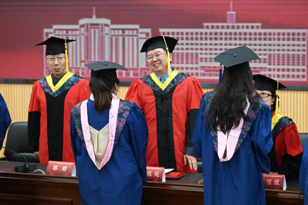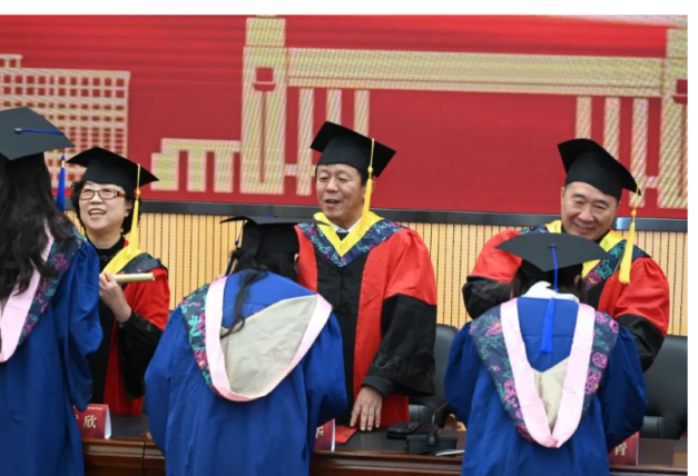 典礼结束后举行学位授予仪式。beat365手机版官网导师代表为毕业生拨穗授礼。