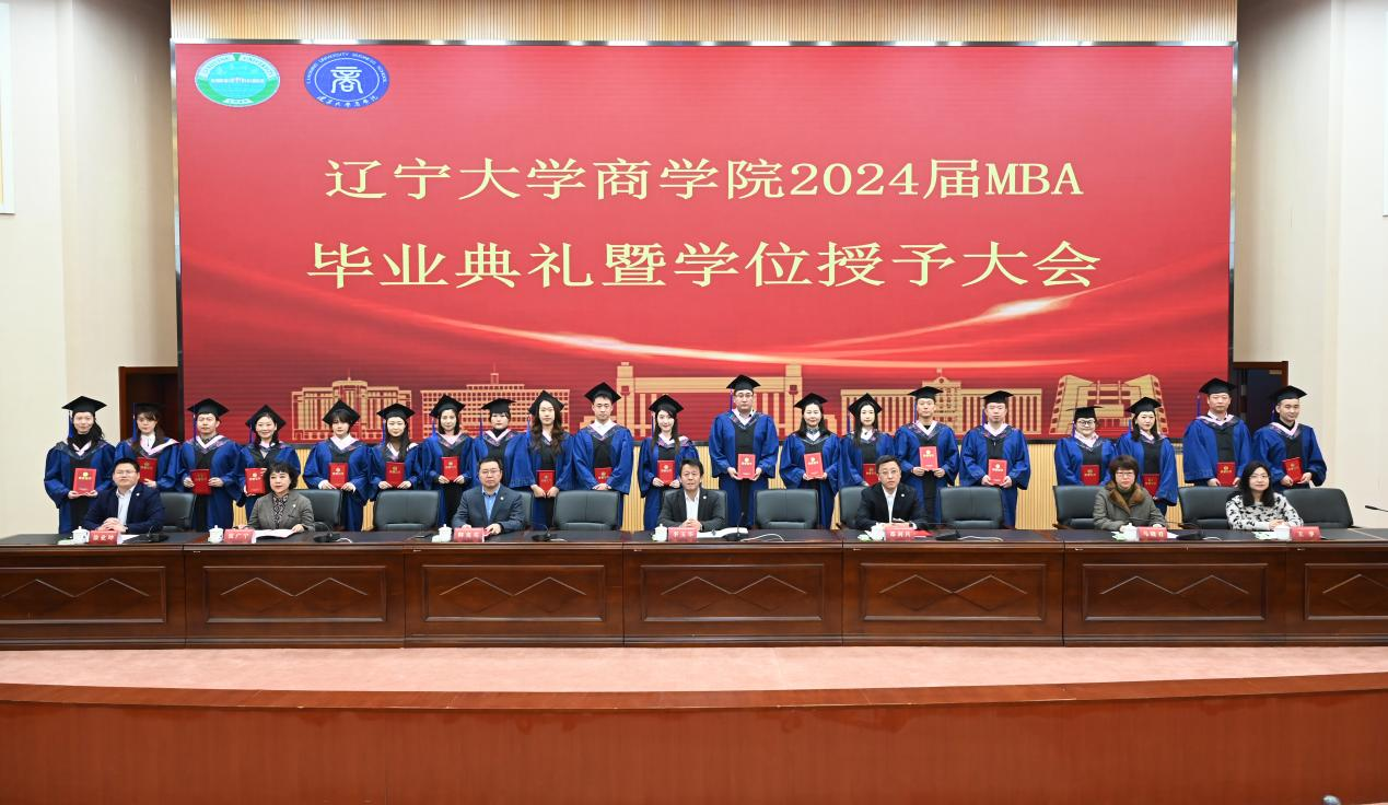 1月5日上午9时,在beat365手机版官网荣获“2024年度MBA卓越beat365手机版官网”称号和beat365手机版官网工商管理一级学科再次入选辽宁省“双一流”建设学科之际,beat365手机版官网2024届MBA毕业典礼暨学位授予仪式在beat365手机版官网蒲河校区蔡冠深学术报告厅举行。beat365手机版官网党委书记李玉华,beat365手机版官网院长韩亮亮,研究生院副院长邵剑兵、副书记兼副院长马晓君,创新创业学院副院长王季,beat365手机版官网副院长张广宁,beat365手机版官网副院长徐业坤,以及beat365手机版官网部分教师代表出席毕业典礼。MBA校友代表中免集团沈阳免税品商贸有限责任公司总经理张海涛应邀出席典礼。beat365手机版官网博士生导师李雪欣、郭燕青、郭舒、董盈厚、袁少锋等作为导师代表参加毕业典礼。