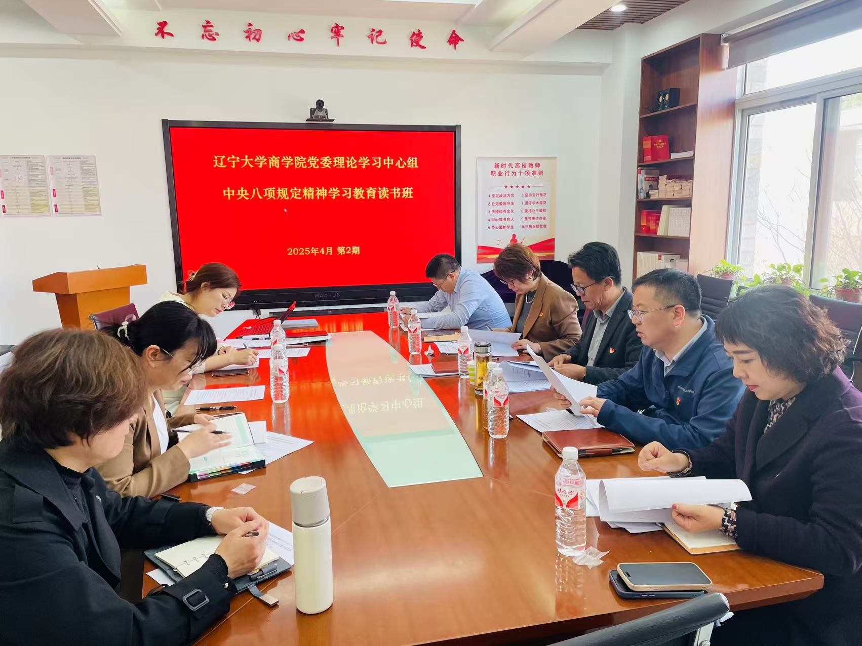李玉华领学研读《beat365手机版官网贯彻执行中央八项规定精神实施细则》,院长韩亮亮、学院党委副书记兼副院长兼纪委书记马晓君结合自身工作实际,围绕学习习近平总书记关于加强党的作风建设的重要论述和中央八项规定及其实施细则精神作重点交流研讨。每位处级党员干部对照问题清单进行自查。马晓君通报六起高等教育领域违反中央八项规定精神典型案例,进行以案说纪警示教育。