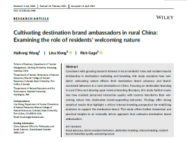 beat365手机版官网王海弘副教授作为第一作者撰写的论文《Cultivating destination brand ambassadors in rural China: Examining the role of residents' welcoming nature》于2021年11月份发表于旅游学科SSCI期刊《International Journal of Tourism Research》,该文从旅游目的地居民在目的地品牌塑造过程中的重要角色出发,以浙江丽水市乡村旅游目的地为研究地点,探讨了目的地居民的好客本性(welcoming nature)如何通过感知互动质量(interaction quality)最终转换为旅游品牌内化行为(brand advocacy&brand-consistency behavior),为旅游目的地品牌内化研究提供了强有力的实证结果。该论文属于王海弘副教授主持的国家社会科学基金项目(18BGL159)阶段性成果。