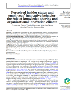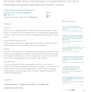 beat365手机版官网张广宁教授作为第一作者与硕士研究生合作完成的论文“Perceived insider status and employees’ innovative behavior: the role of knowledge sharing and organizational innovation climate”在《European Journal of Innovation Management》发表。