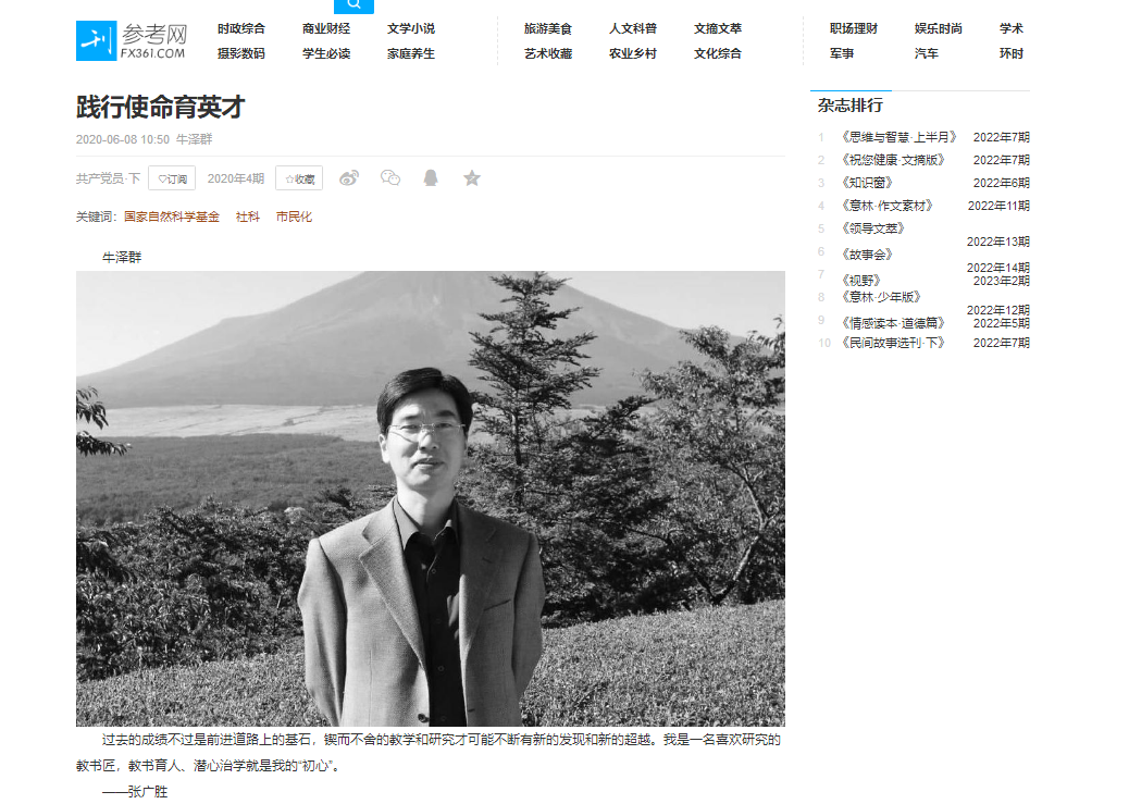 过去的成绩不过是前进道路上的基石,锲而不舍的教学和研究才可能不断有新的发现和新的超越。我是一名喜欢研究的教书匠,教书育人、潜心治学就是我的“初心”。