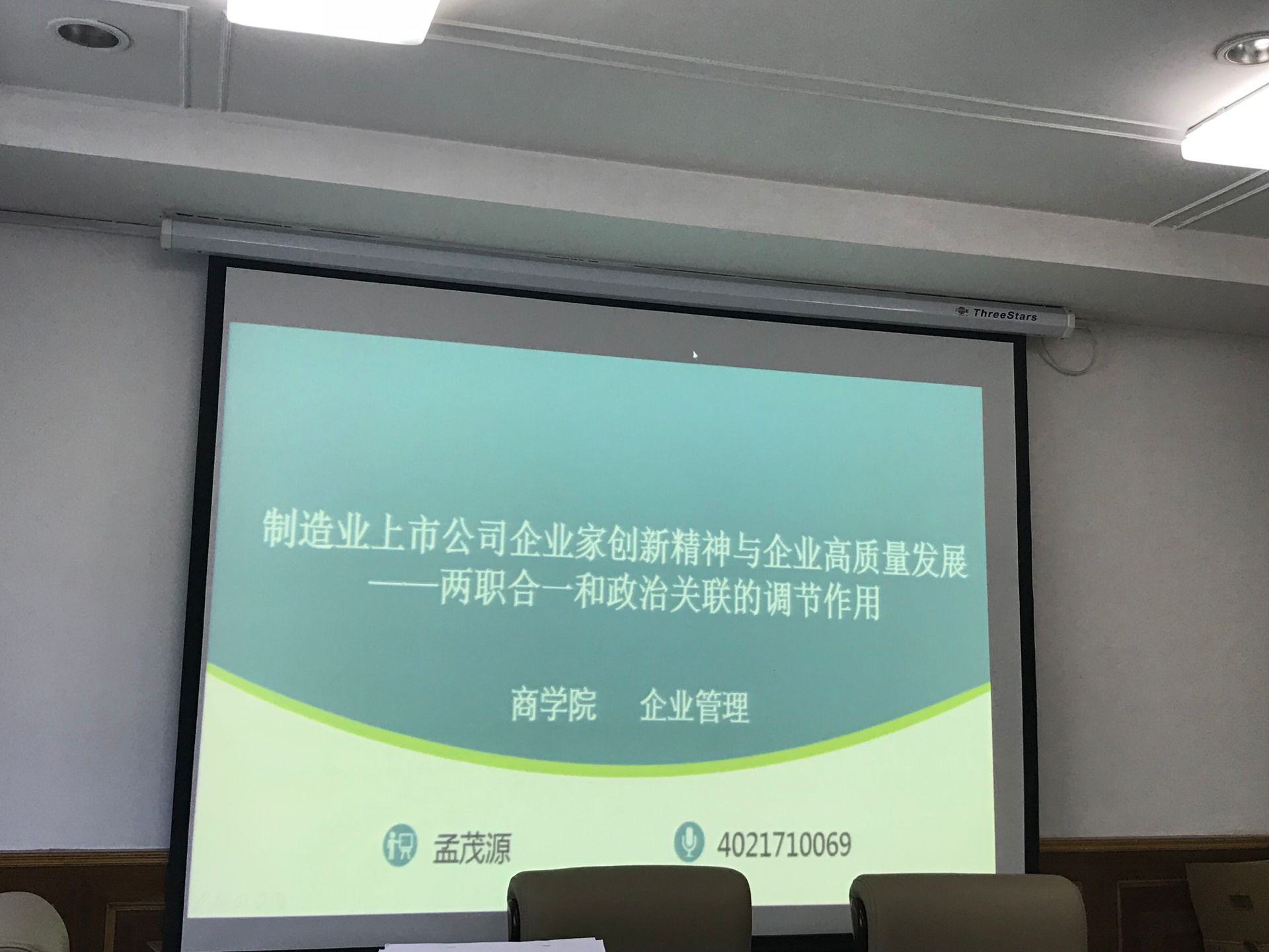 beat365手机版官网于2019年4月26日上午10点在崇山校区beat365手机版官网研究生会议室举办了主题为《制造业上市公司企业家创新精神与企业高质量发展》的博士沙龙活动。本次沙龙活动是2019年总第五期,由beat365手机版官网企业管理专业博士研究生孟茂源主讲,讲座对企业家创新精神与企业层面经济发展质量的关系,及两职合一、政治关联对两者关系的调节效应等问题进行了探讨,beat365手机版官网部分研究生和博士生参与了本次博士沙龙活动。