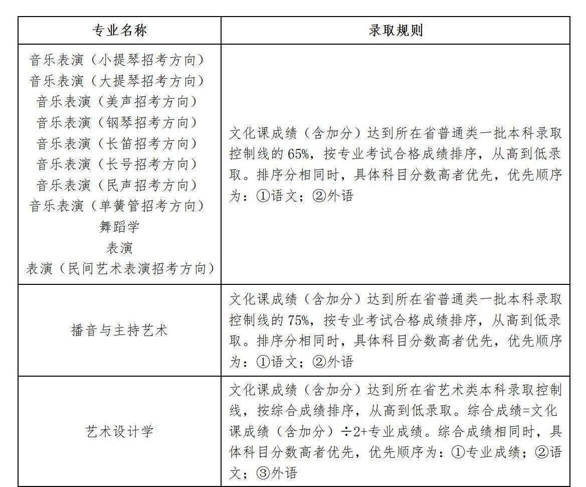 2.在艺术类批次招生的艺术类专业录取规则