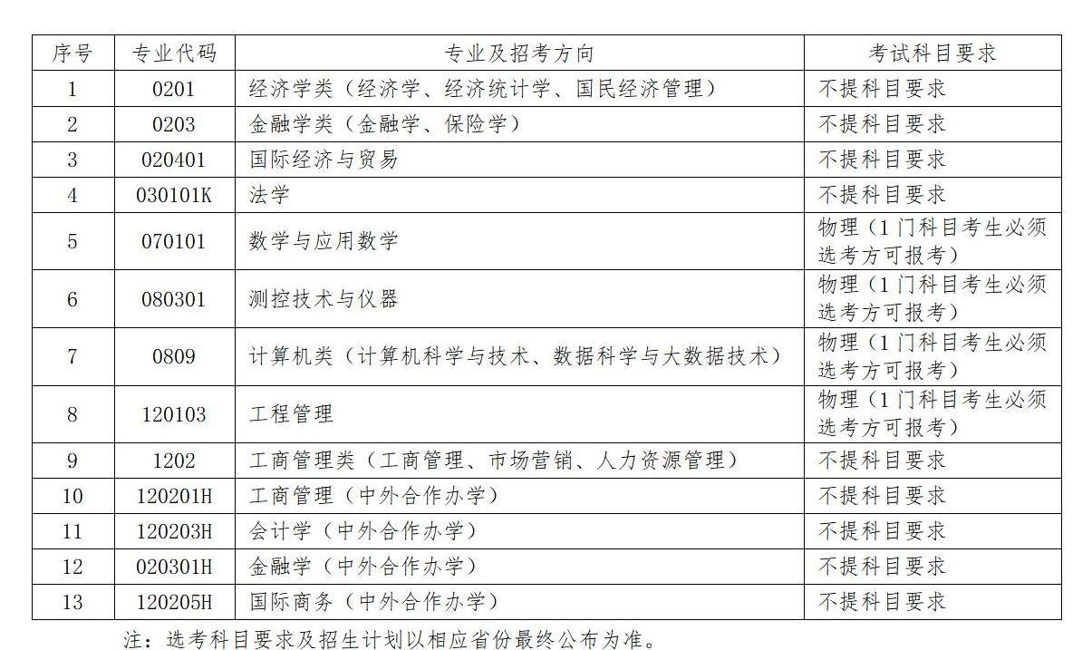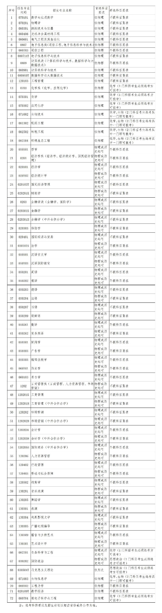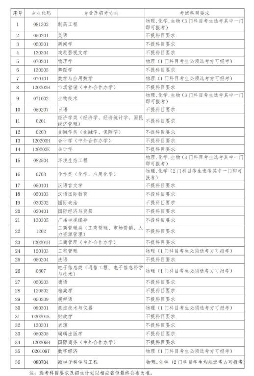 (三)高考综合改革试点省(市)设置的招生专业(类)计划,对选考科目的要求、综合素质档案的使用办法,以当地教育行政部门(或招生考试部门)及我校本科招生官方网站公布为准。在第三批高考综合改革省份招生专业的选考科目要求以相应省份最新公布为准。